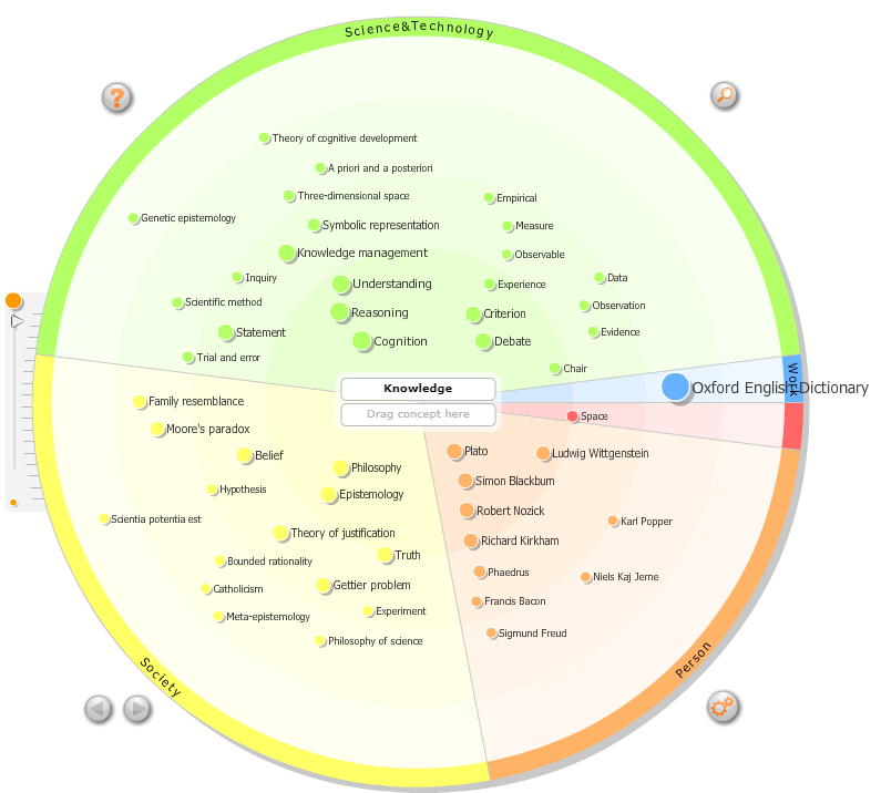 The engine is still active at eyeplorer.com. The search for term “Knowledge” leads to the following view (each term clickable):